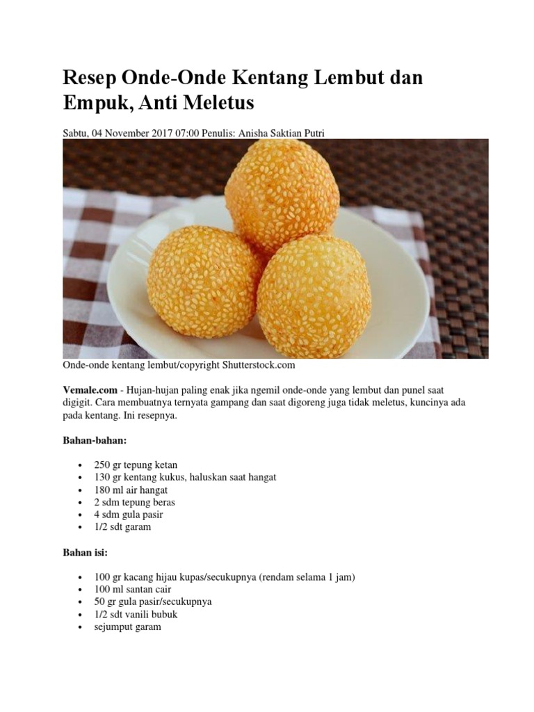 Masak santan, butter, gula, garam di wajan anti lengket kukus/ rebus kentang yang sudah dikupas kulitnya. Resep onde onde kentang anti kempes dan tidak meletus. Resep onde onde anti kempes anti meletus dan anti gagal. Resep onde onde pelangi takaran sendok | anti kempes anti meletus dan anti gagal. Resep onde onde anti kempes anti meletus dan anti gagal. Cara bikin onde onde kenyal ,hanya dengan takaran sendok. Cara membuat otak otak bandeng khas gresik jawa timur. • 500 gram tepung terigu perotein rendah • 1 sendok teh baking powder double acting bpda) • 1/2 sendok teh soda kue • 150 gram gula pasir • 50 gram margarin • 4 butir telur • 1 sendok. Cara memasak martabak teflon takaran sendok : Pertama tama kita bikin isi kacang hijaunya dulu. 1/4 sendok teh vanilli bubuk. Cara membuat bahan isi onde. Untuk membuat onde onde mini cara membuat onde onde ini juga sama dengan resep sebelumnya.